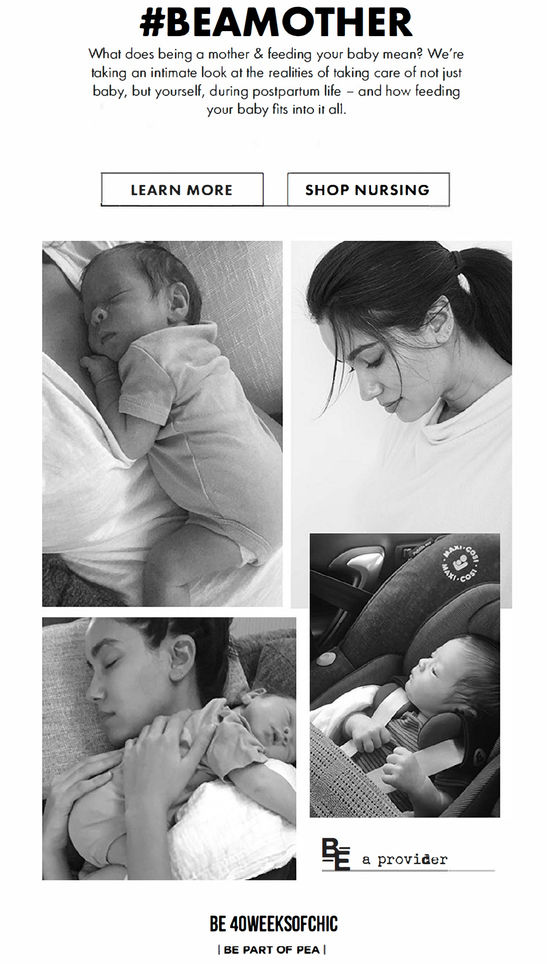 Experienced in full creative direction ownership, creative operations delivering campaigns across all marketing channels. I showcase a variety of 360 marketing examples highlighting brand campaigns, social, seasonal and product launches.. In the Brand section #beamother was a full brand re-fresh for A Pea in the Pod in 2020. A bold, beautiful, elevated return to black on black visual identity, clean expression, designer driven and strong branding. The creative theme carries through to today.